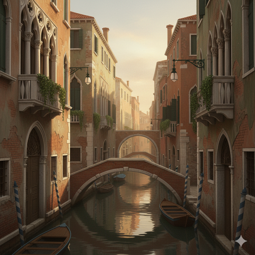 Veneza tem uma grande quantidade de ruelas, o que faz com que até seus moradores às vezes se percam no meio do verdadeiro labirinto formado por elas. Com seus canais, pontes, história e charme, a cidade atraiu para si muitos escritores de primeira linha, como Ezra Pound, Henry James e Robert Browning, que lá moraram durante longos períodos de suas vidas.
